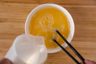 1、将鸡蛋液打散,加入温水300克