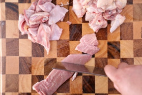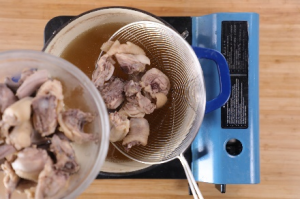 2、锅中烧水放入鸡块、猪肚焯水,捞出洗净