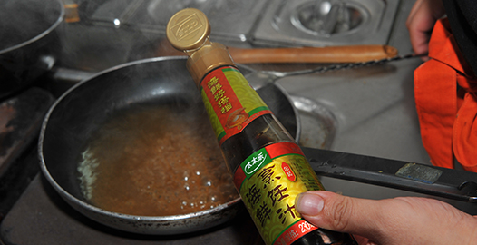 2、用猪骨汤料加海鲜烹饪汁、冰糖、耗油调成鲍汁。