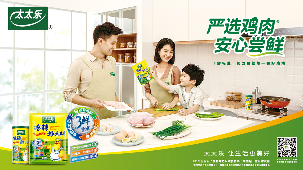 2.三鲜标准成就太太乐好鸡精;新鲜原料,倍鲜配方,优鲜品质